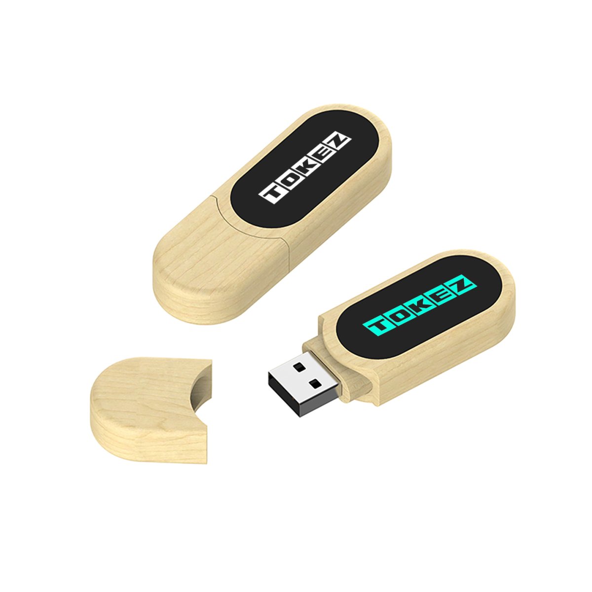 IŞIKLI AHŞAP USB BELLEKİ AHŞAP GÖVDE, KAPAKLI